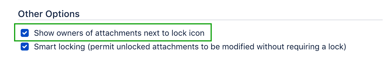 For attachments that are locked, this option enables an inline display of the name of the current lock owner in attachment lists. Otherwise, Lockpoint displays only the lock icon. The display of lock owners appears like this within an Attachments macro: