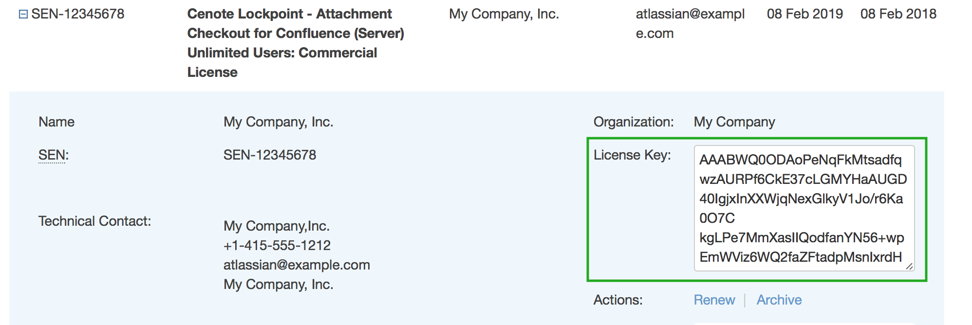 An Atlassian-issued Lockpoint license looks like this on my.atlassian.com: