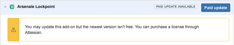 If you are not yet on Lockpoint 1.6.9+, go to the Confluence Administration "Manage Apps" page, and click the Paid update button to download and install the latest version of Lockpoint. There is no charge when clicking on "Paid update" if your maintenance is current.
